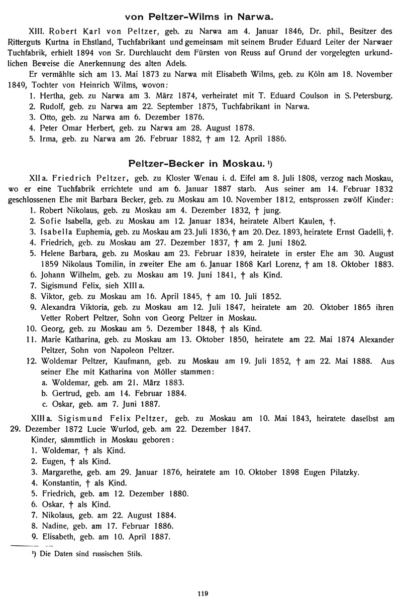 HERMANN FRIEDRICH MACCO ![]() H. F. Macco ( July, 13 1864 in Aachen - January 14, 1946 in Stuttgart) , a German historian and genealogist, specialized in the field of family research, and in particular to the study of the patrician society of Aachen and the Rhineland. Tracking the resettlement of Peltzer descendants from Western Germany to other countries of Europe, Russia, North and South America, Asia, and South Africa, he published 369-page book in July 1901 in Aachen . ![]() - PELTZER -