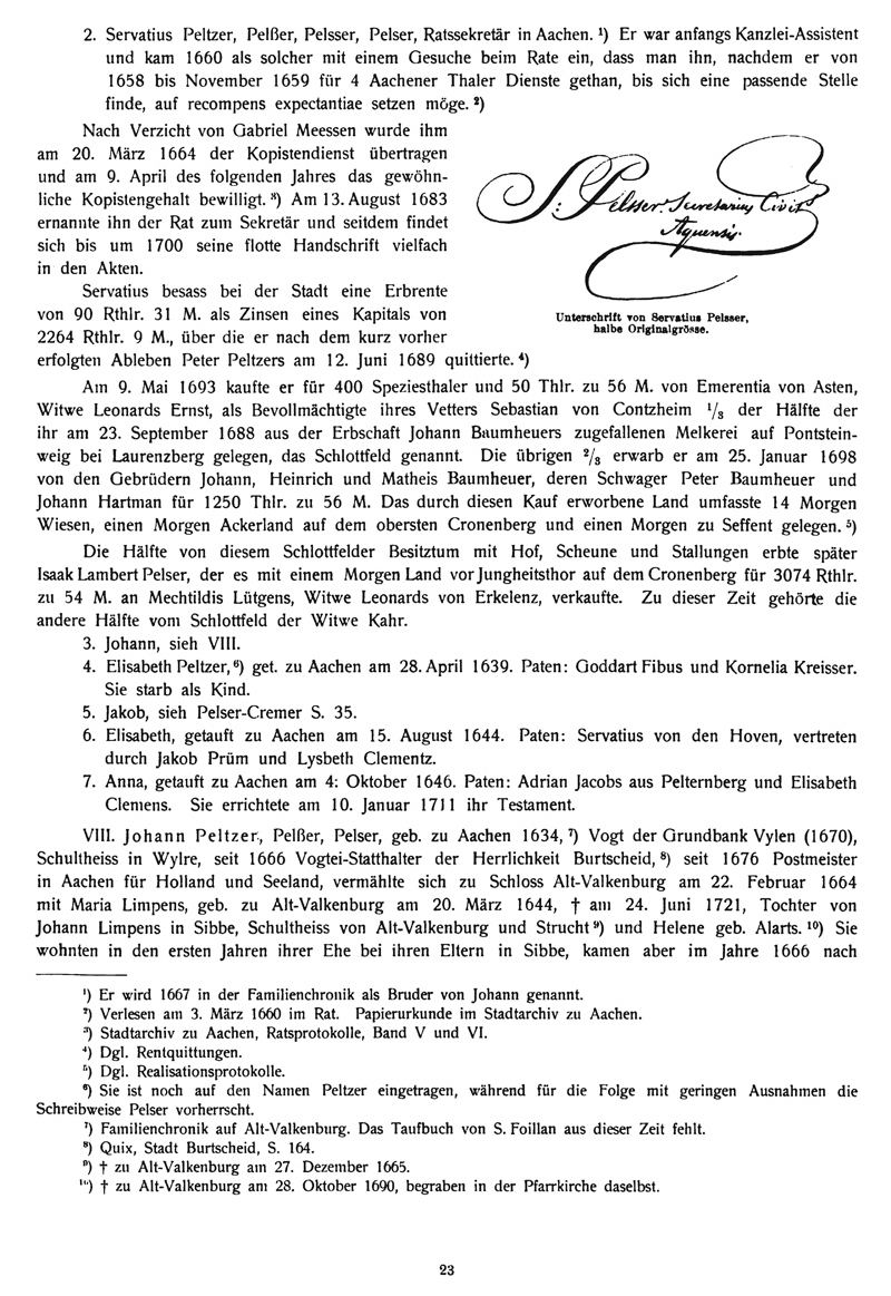 HERMANN FRIEDRICH MACCO ![]() H. F. Macco ( July, 13 1864 in Aachen - January 14, 1946 in Stuttgart) , a German historian and genealogist, specialized in the field of family research, and in particular to the study of the patrician society of Aachen and the Rhineland. Tracking the resettlement of Peltzer descendants from Western Germany to other countries of Europe, Russia, North and South America, Asia, and South Africa, he published 369-page book in July 1901 in Aachen . ![]() - PELTZER -