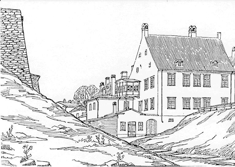 Jenseits der Bruecke fuehrte eine mit den Bullersteinen gepflasterte breite Strasse den Berg hinauf. Auf den hohe Boeschungen zu beiden Seiten des Weges zieht sich links bis oben hin die maechtige Hermannsburg, waehrend rechts die Haeuser der alten Stadt liegen. Peltzer Haus in Narva, 1845-1918 ![]() ![]() ![]() Eduard Gendt Haus in Narva Eduard Gendt Haus in Narva |