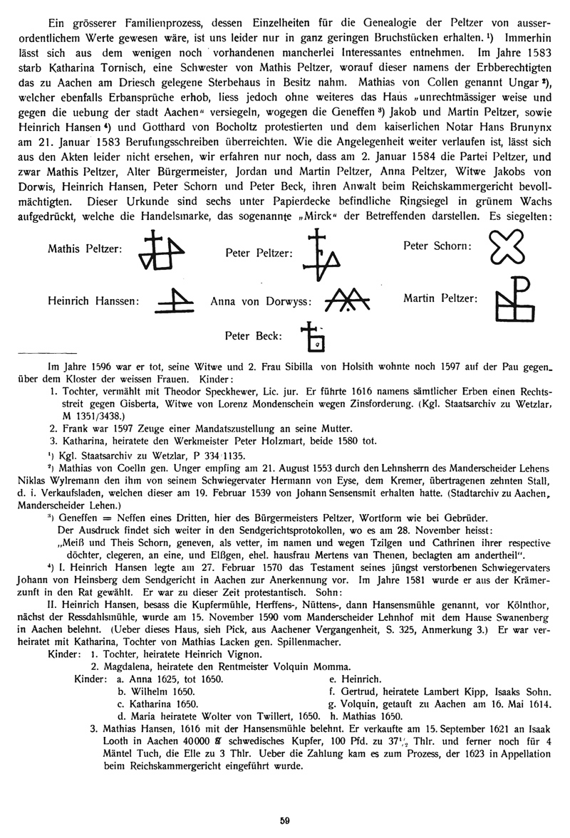 HERMANN FRIEDRICH MACCO ![]() H. F. Macco ( July, 13 1864 in Aachen - January 14, 1946 in Stuttgart) , a German historian and genealogist, specialized in the field of family research, and in particular to the study of the patrician society of Aachen and the Rhineland. Tracking the resettlement of Peltzer descendants from Western Germany to other countries of Europe, Russia, North and South America, Asia, and South Africa, he published 369-page book in July 1901 in Aachen . ![]() - PELTZER -