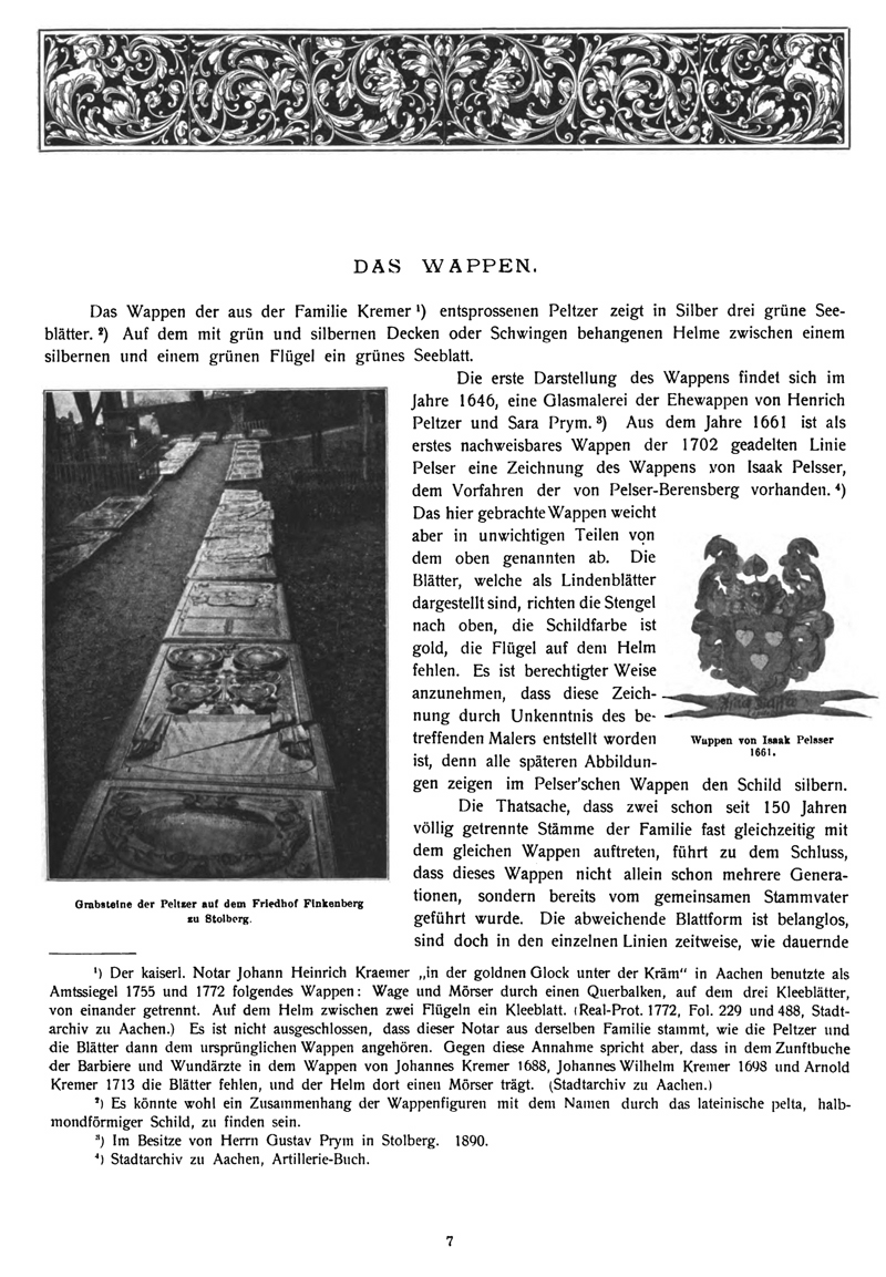 HERMANN FRIEDRICH MACCO ![]() H. F. Macco ( July, 13 1864 in Aachen - January 14, 1946 in Stuttgart) , a German historian and genealogist, specialized in the field of family research, and in particular to the study of the patrician society of Aachen and the Rhineland. Tracking the resettlement of Peltzer descendants from Western Germany to other countries of Europe, Russia, North and South America, Asia, and South Africa, he published 369-page book in July 1901 in Aachen . ![]() - PELTZER -