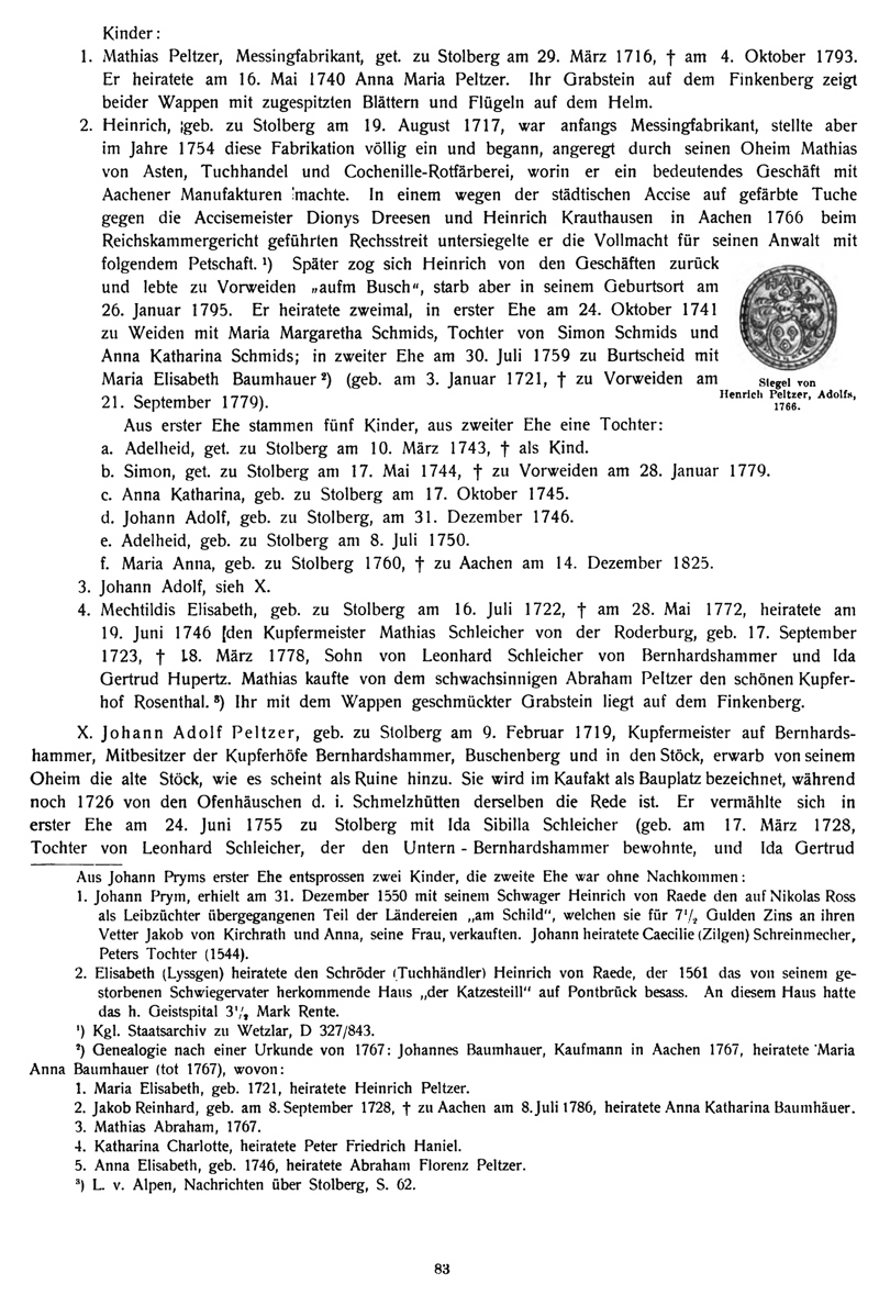 HERMANN FRIEDRICH MACCO ![]() H. F. Macco ( July, 13 1864 in Aachen - January 14, 1946 in Stuttgart) , a German historian and genealogist, specialized in the field of family research, and in particular to the study of the patrician society of Aachen and the Rhineland. Tracking the resettlement of Peltzer descendants from Western Germany to other countries of Europe, Russia, North and South America, Asia, and South Africa, he published 369-page book in July 1901 in Aachen . ![]() - PELTZER -