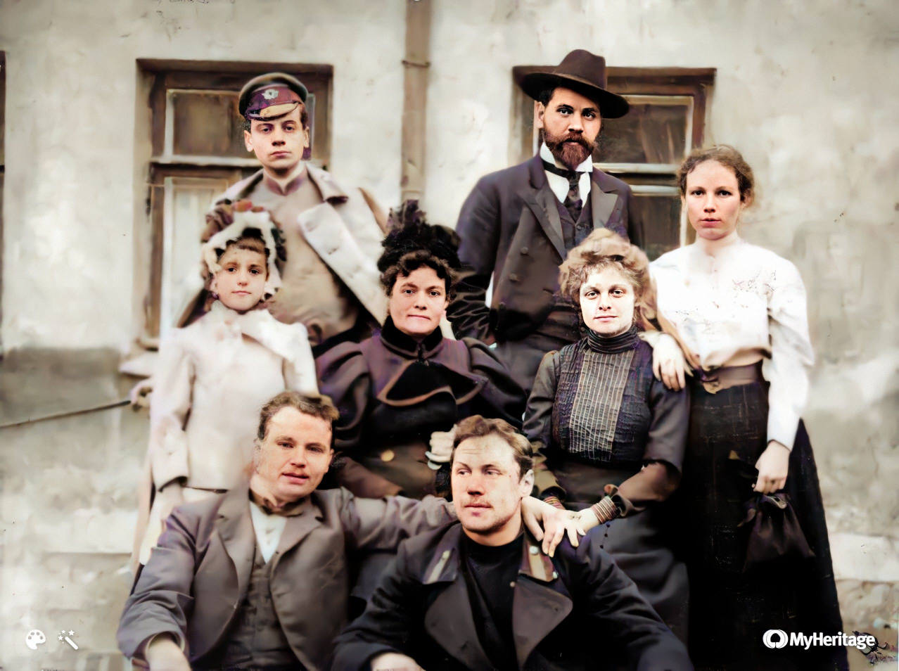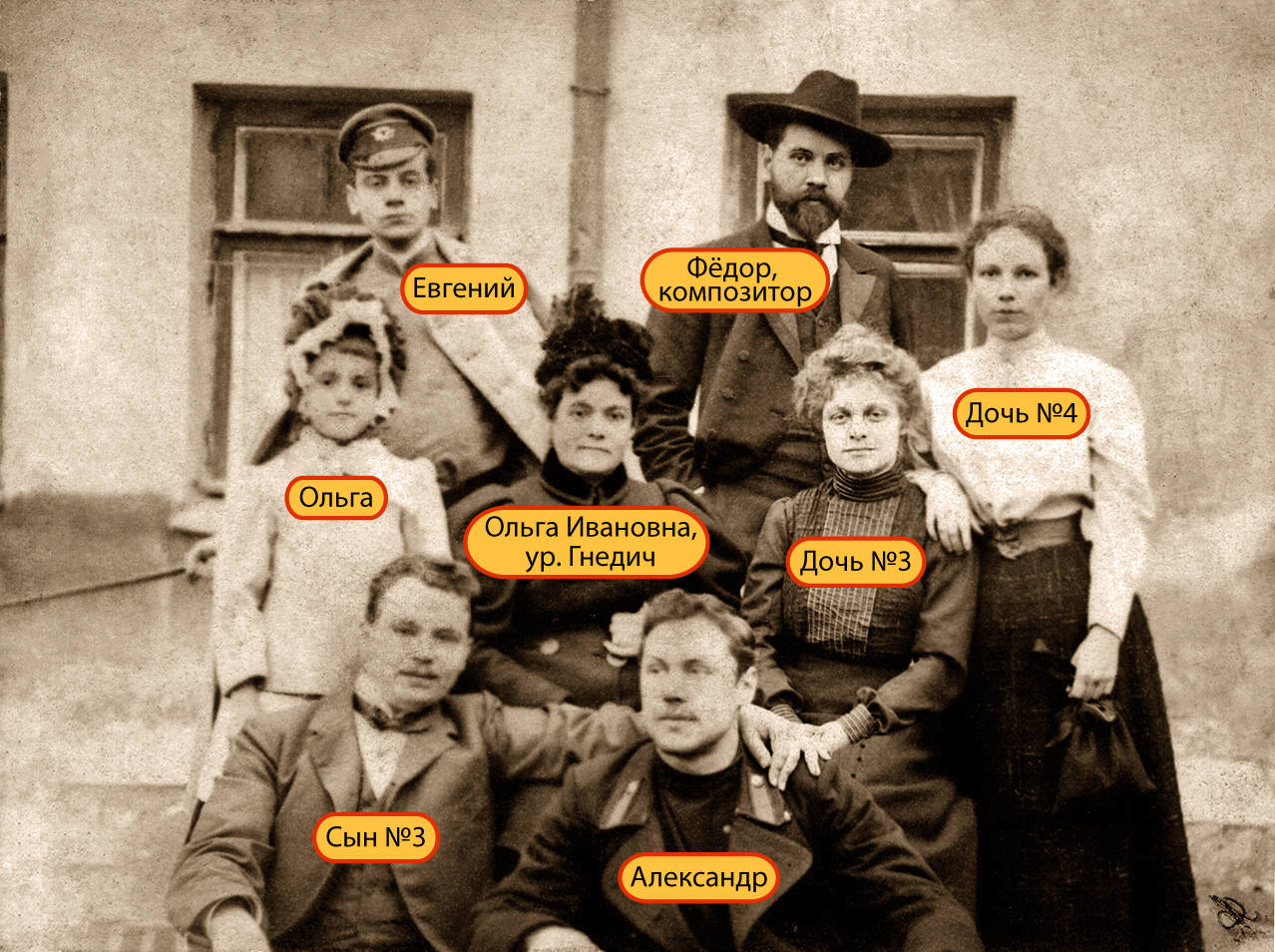 Композитор Фёдор Фёдорович Кенеман (верхний ряд, в шляпе) с членами семьи (около 1900 года).