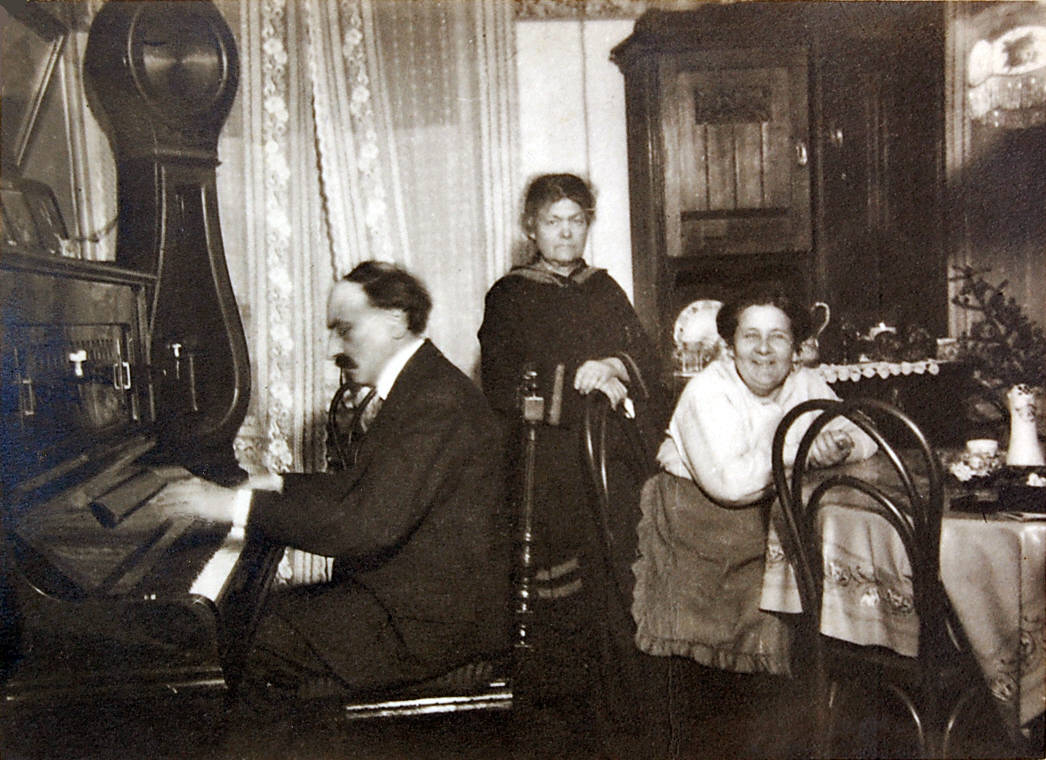 Фёдор Фёдорович Кёнеман музицирует в кругу семьи. В центра - его мать Ольга Ивановна , за столом - жена Мария Ефремовна. Начало 1920-х гг. Москва.