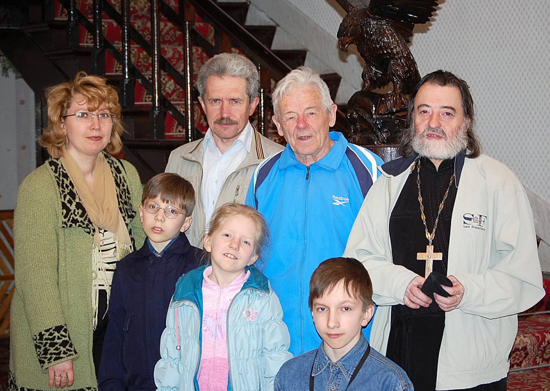 Фёдор Георгиевич Соловьёв, Елена Викторовна Смирнова, Анна Сергеевна Казакова, Наталья Владимировна Казакова, Сергей Евгеньевич Казаков-Кёнеман (Отец Сергий), Михаил Георгиевич Кёнеман, Андрей Викторович Пуганов. Анискино, дома у отца Сергия. 9 мая 2008 г. www.Keneman.com >>> Генеалогическое древо Кёнеманов >>> Михаил Георгиевич Кёнеман