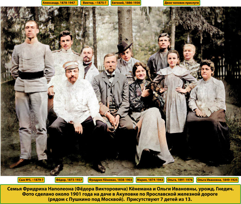 В верхнем ряду стоят сыновья Ольги Ивановны - Евгений (слева) и композитор Фёдор (справа). www.Keneman.com >>> Семейное древо Кёнеманов >>> Ольга Ивановна Кёнеман, урождённая Гнедич ![]()