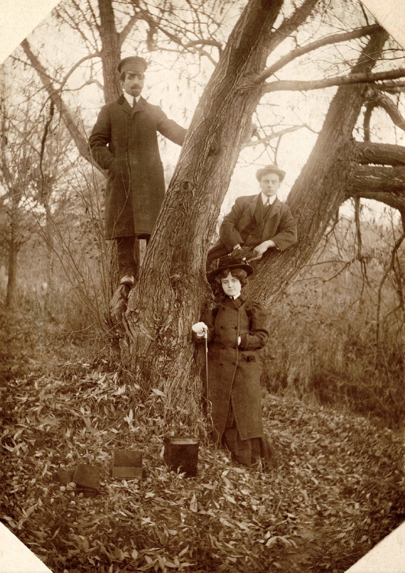 Фёдор Кёнеман (стоит слева на дереве), его сестра Ольга и брат Евгений . ![]()
