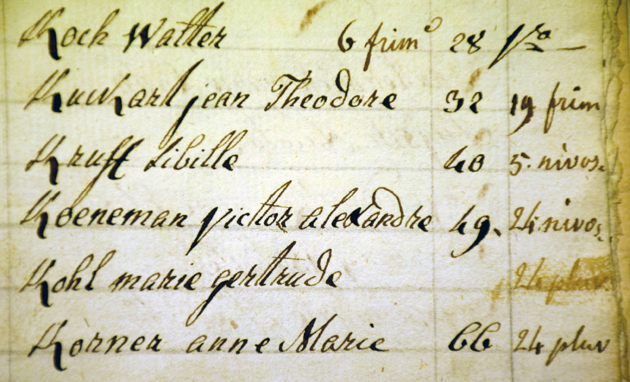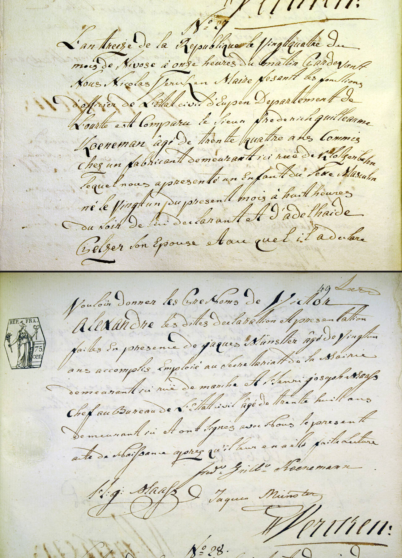 Свидетельство о рождении: Виктор Александр Кёнеман, 14 января 1805 г. Оригинальная дата указана по французскому "революционному" календарю, как 24 nivose (месяц снега) 13-го года.