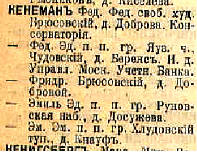 Свидетельство о смерти Фридриха Вильгельма Кёнемана (1769-1840), прадедушки Виктор, род. 7 декабря 1876 г. Брат Фёдора Кёнемана, прапорщик 289-го Сухаревского полка. Мария (14 августа 1874 - 1943). Сестра Фёдора Кёнемана, научный сотрудник нотной библиотеки Московской Консерватории. Брат Фёдора Кёнемана, род. ок. 1876 г., имя неизвестно. Александр (1878-1947) - брат Фёдора Кёнемана, прапорщик Троице-Сергиевского полка, Помощник Присяжного Поверенного округа Московской судебной палаты Гиршмана Маврикия Осиповича . ![]() |